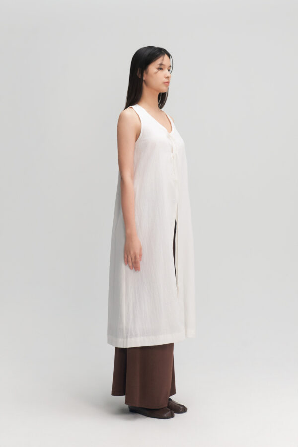 Classic – Triple Knot Long Tank Dress (White Stripe Textured)