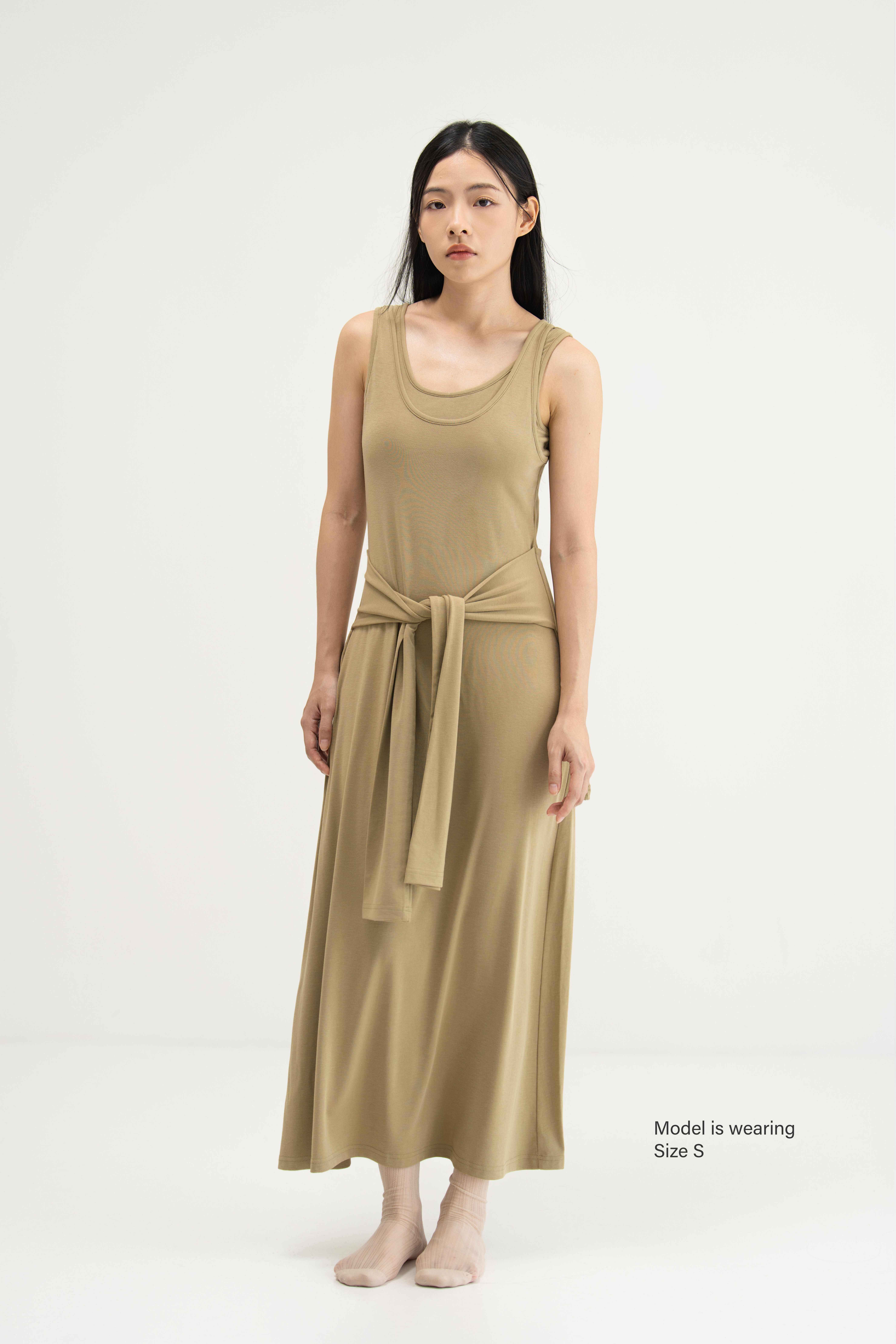 WES x SO | Waist Tie Tank Bra Dress (Khaki)