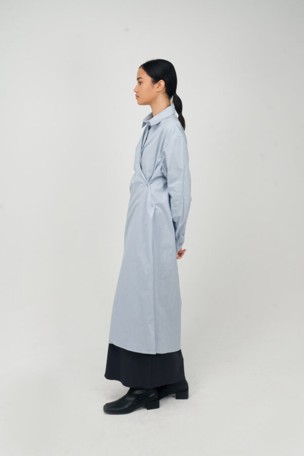 Classic – Curved Placket Blouse Dress (Dust Blue)