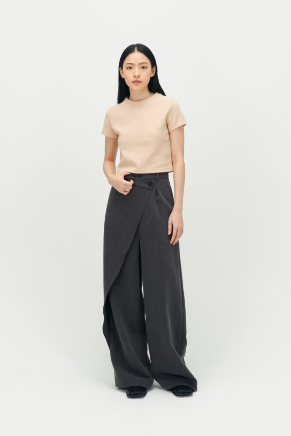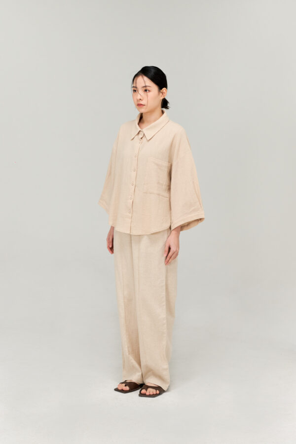 Asa – Wide Sleeve Short Blouse (Textured Khaki)