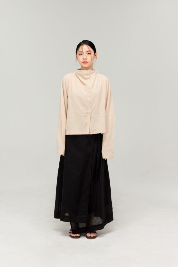 Asa – High Neck Button Long Sleeve Top (Textured Khaki)