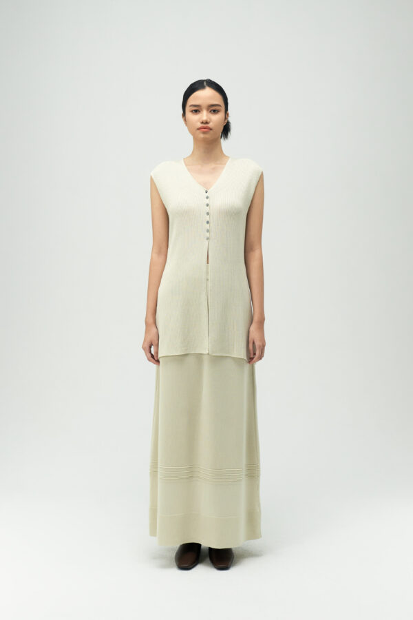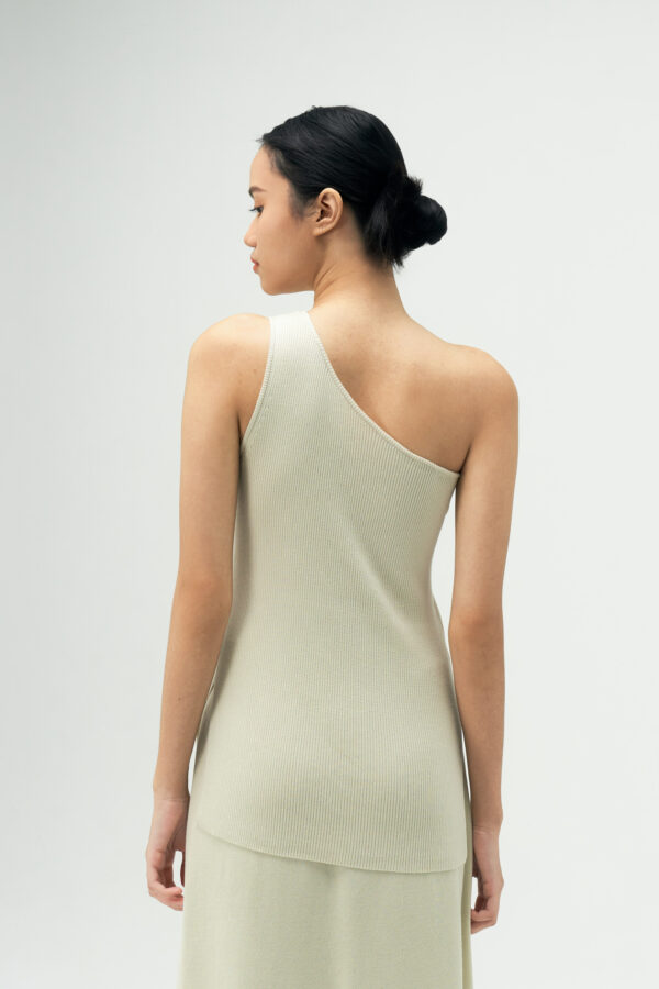 Classic – Knitted One Shoulder Ribbed Tank (Oat)