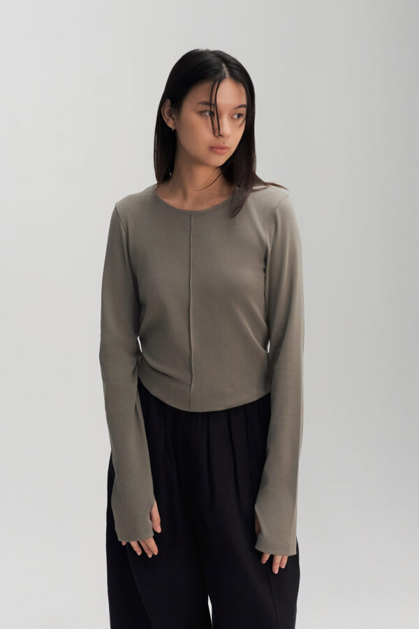 Classic – Cotton Knit Open Back Long Sleeve (Olive Grey)