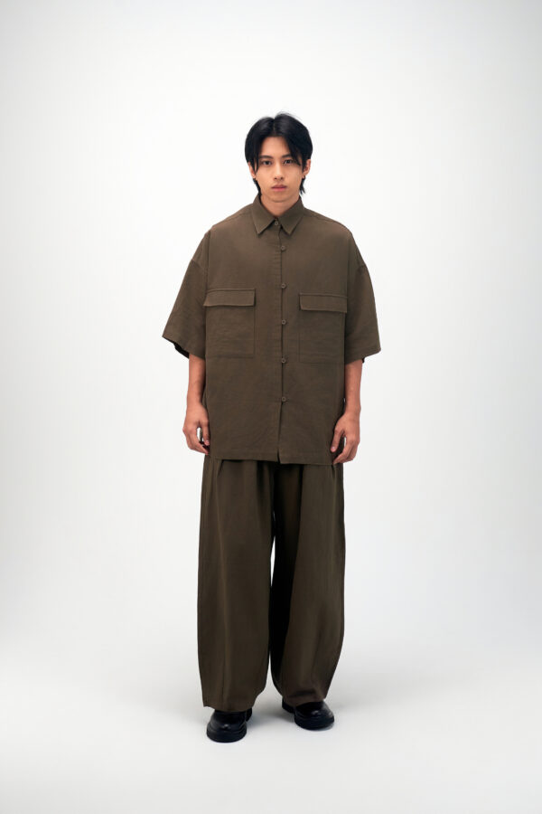 Gender Neutral Cocoon Trousers (Linen / Olive Brown)