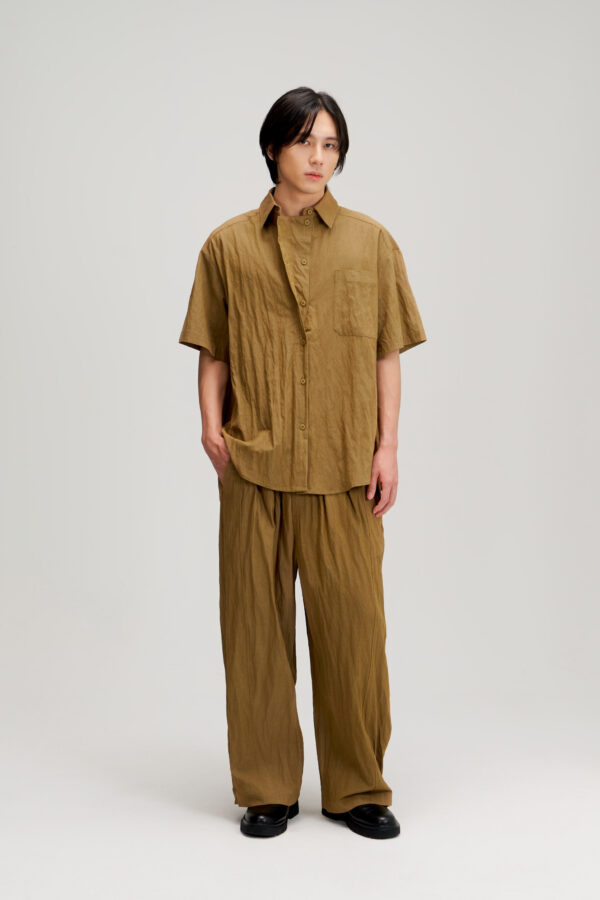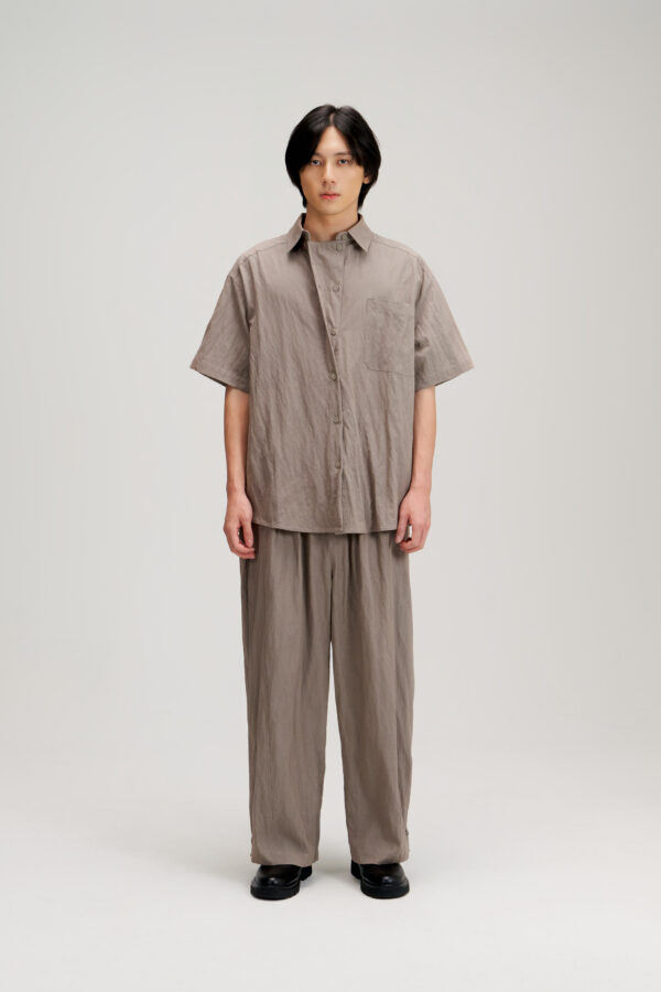 Gender Neutral Drape Neck Short-Sleeve Shirt (Mud)