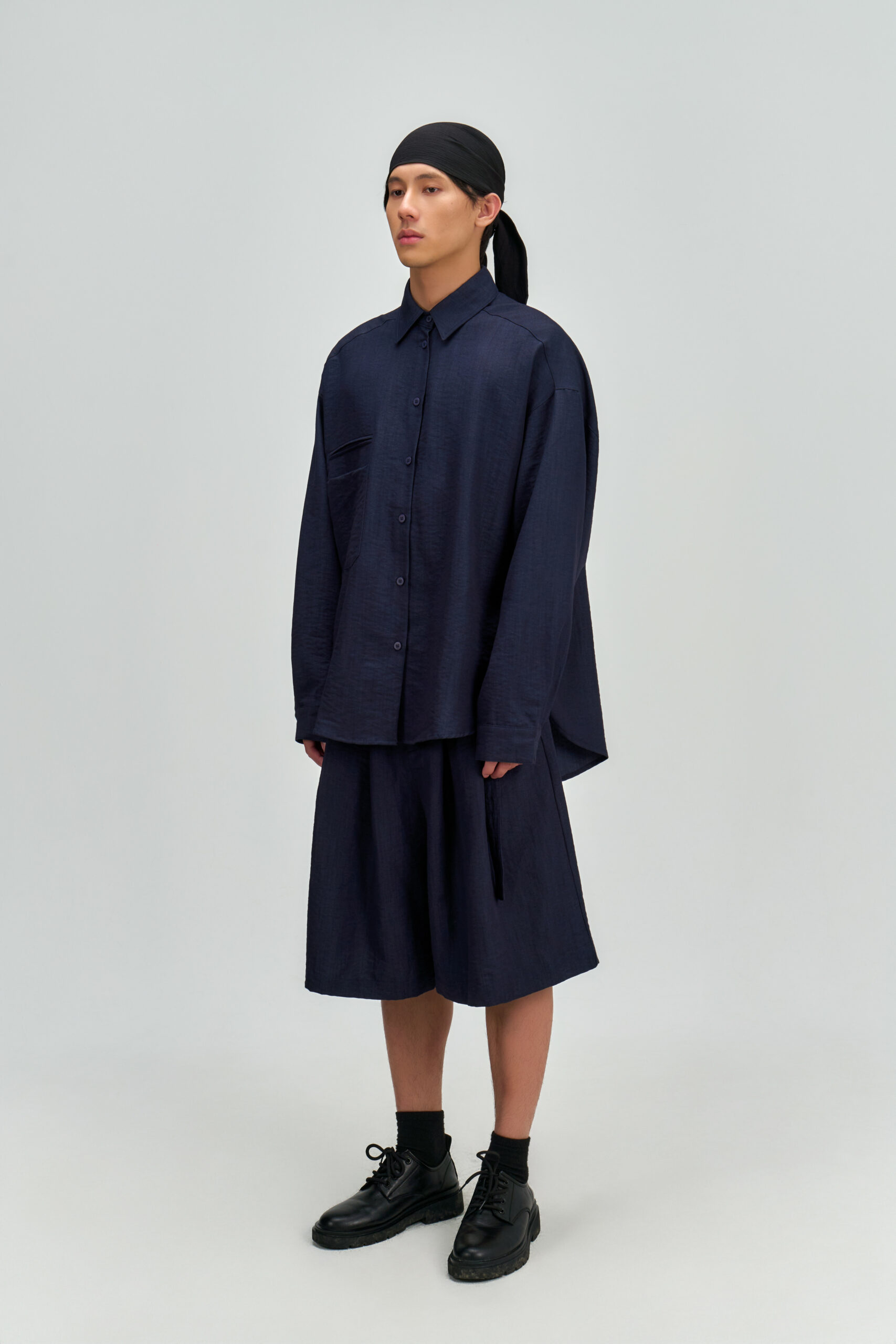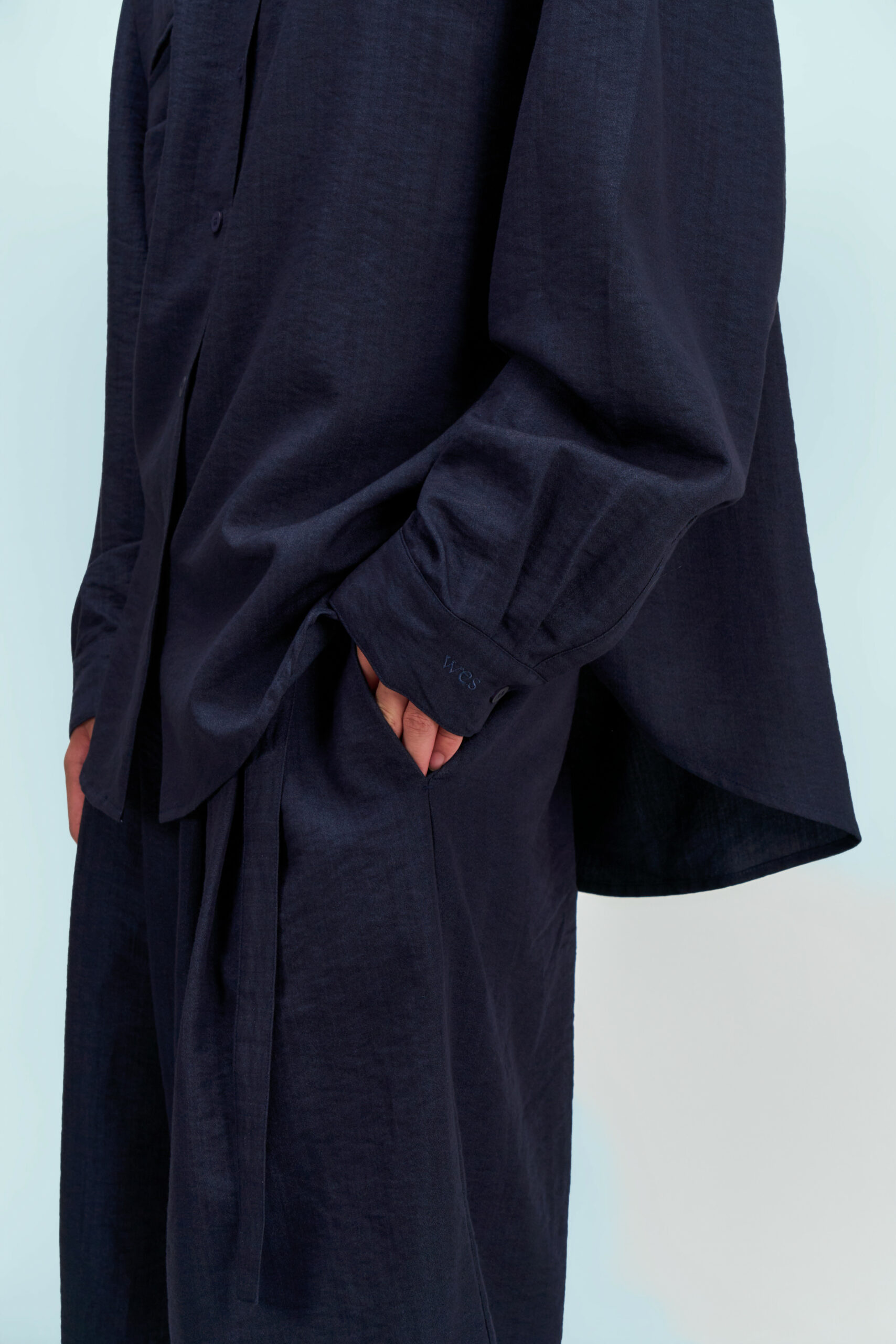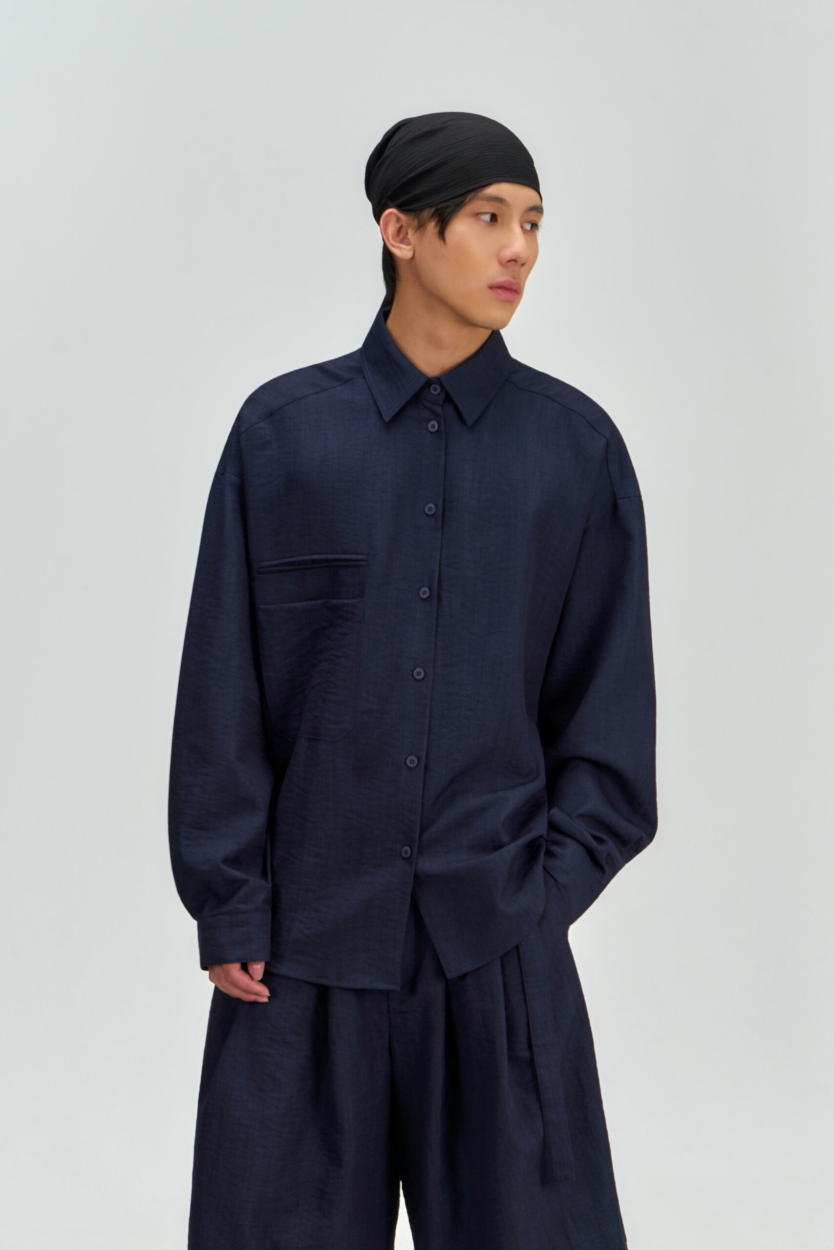 Gender Neutral Oversized Arm Long Sleeve Blouse (Navy)