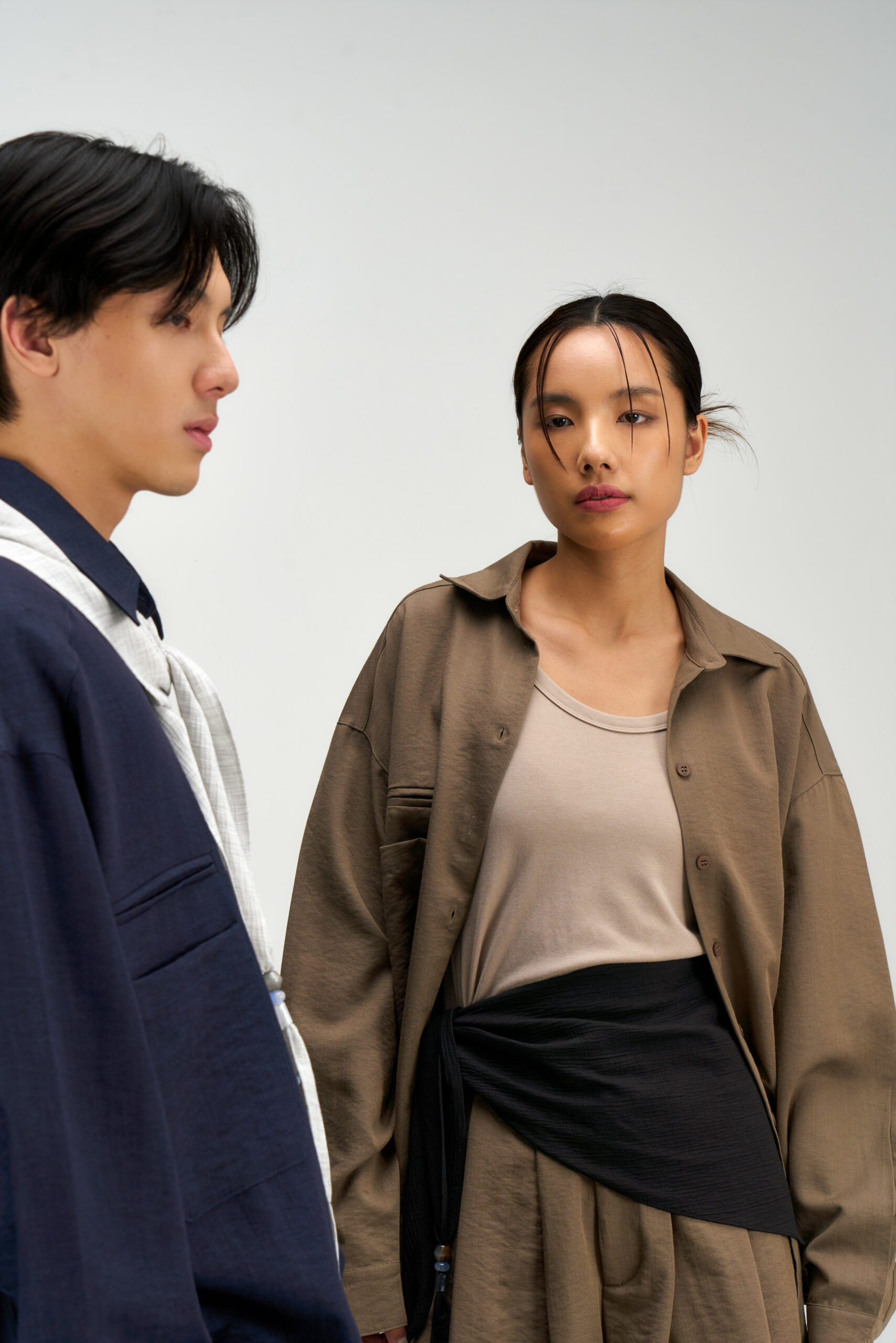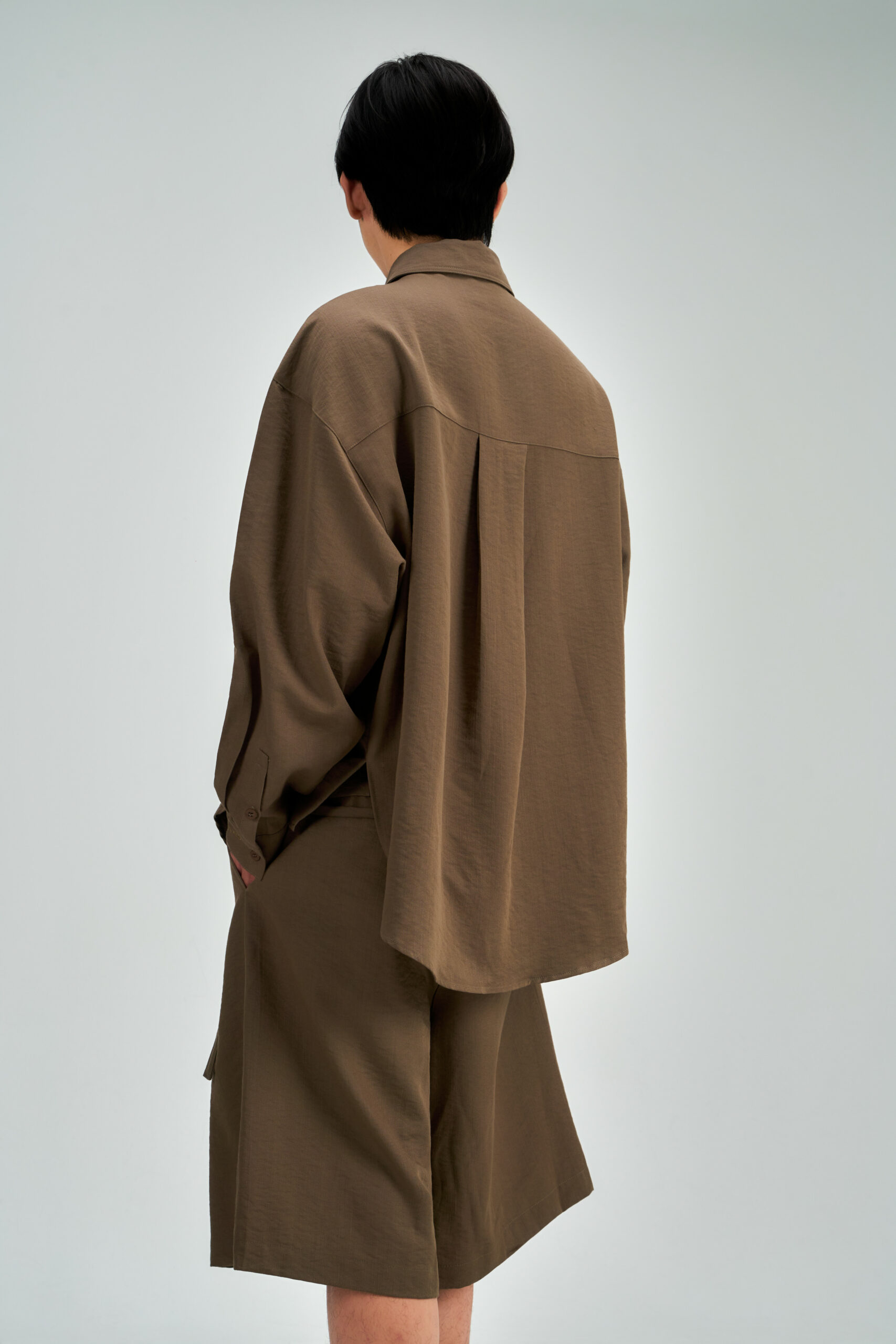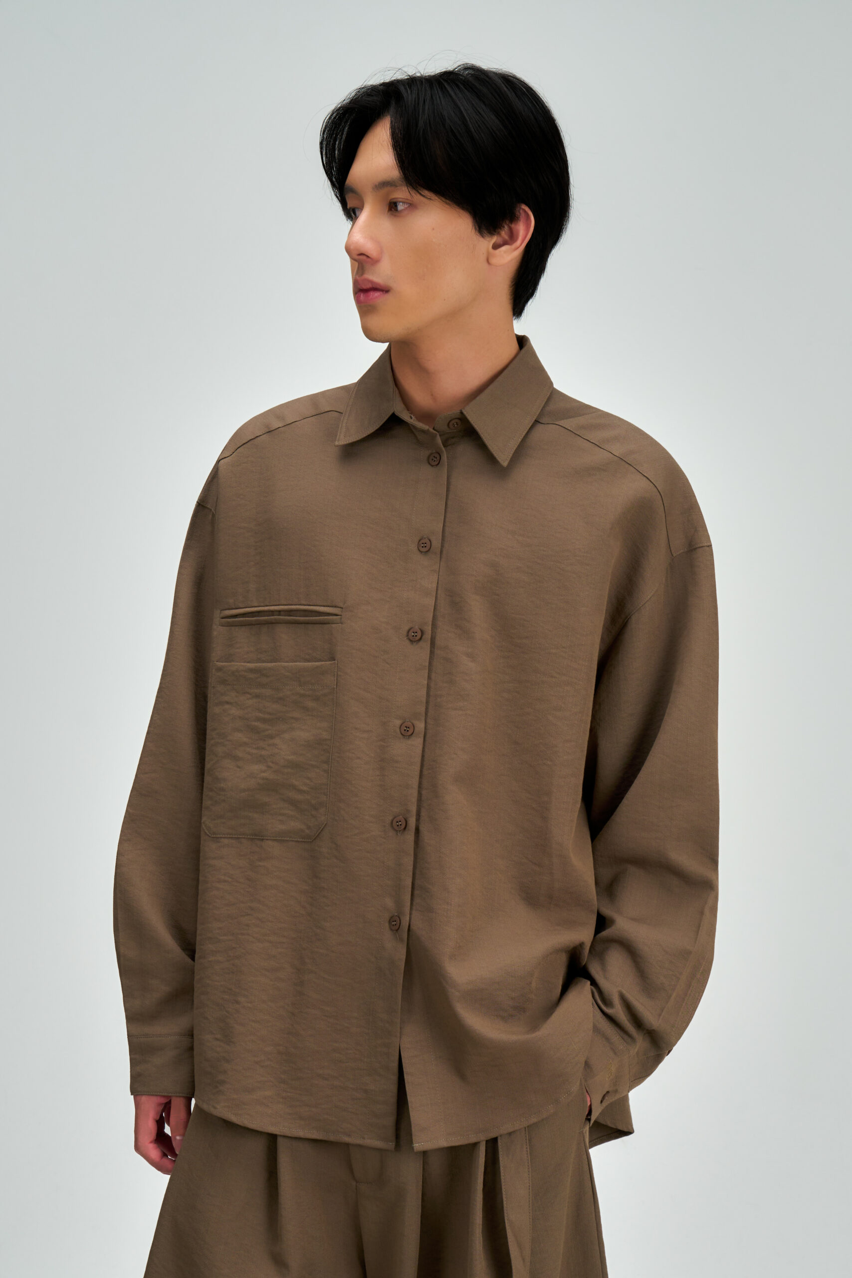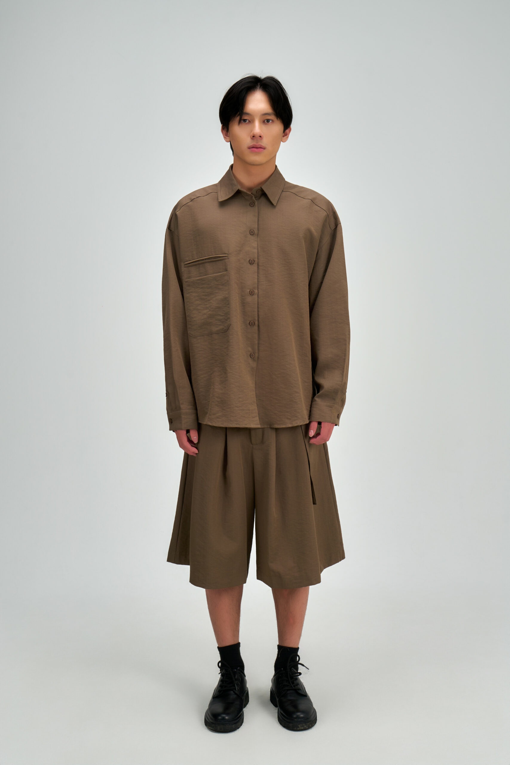 Male model, Meng Hao, is 177cm, 65kg, wears size M.