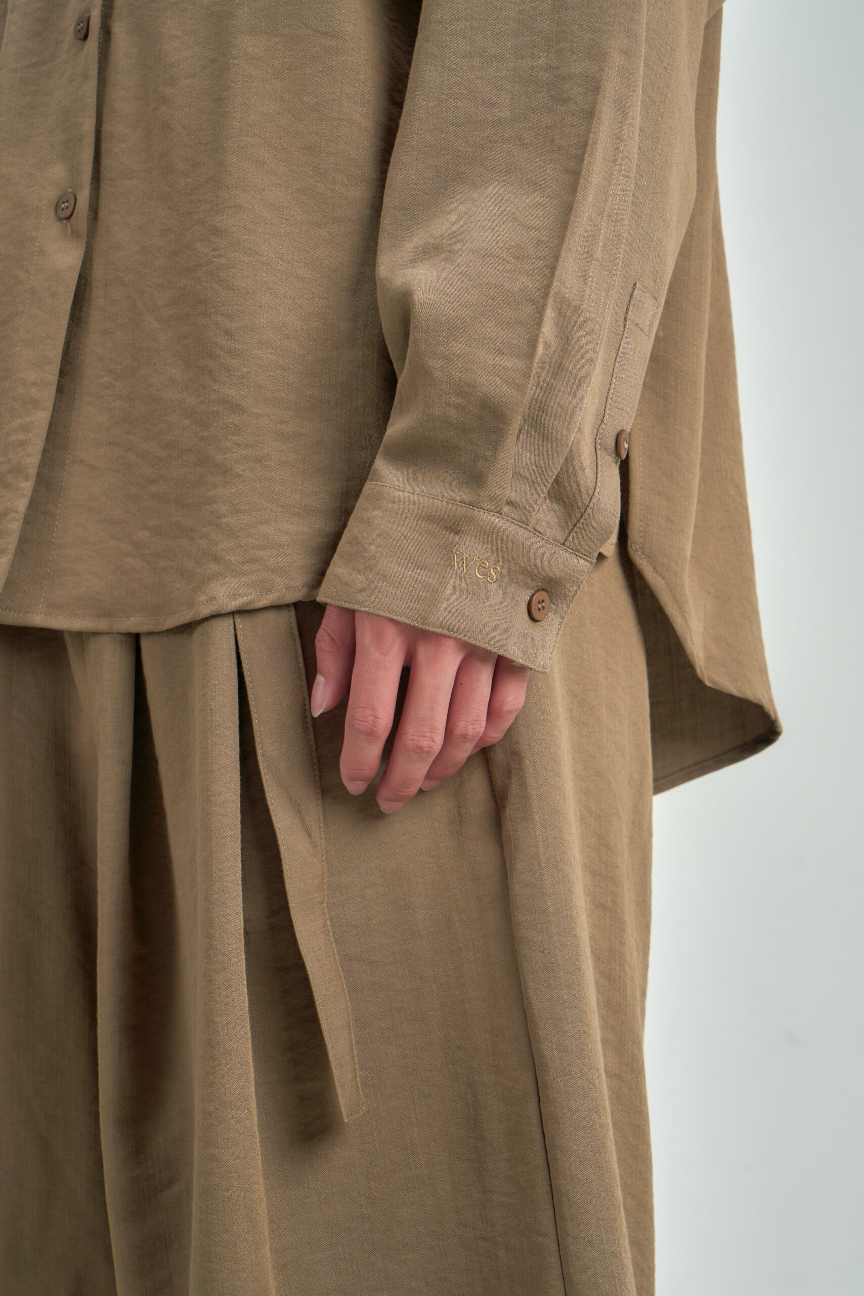 • WES signature logo embroidery at cuff