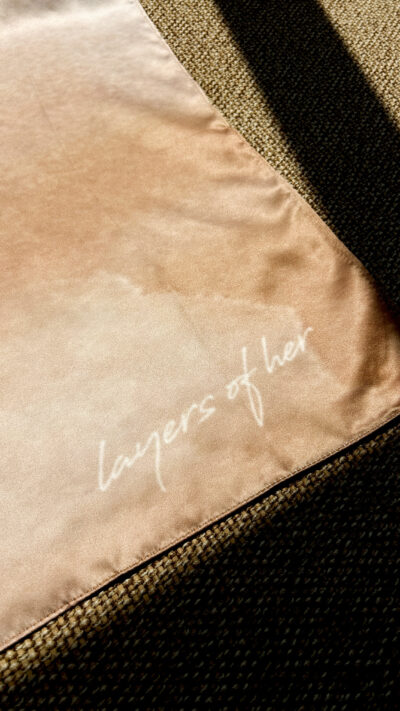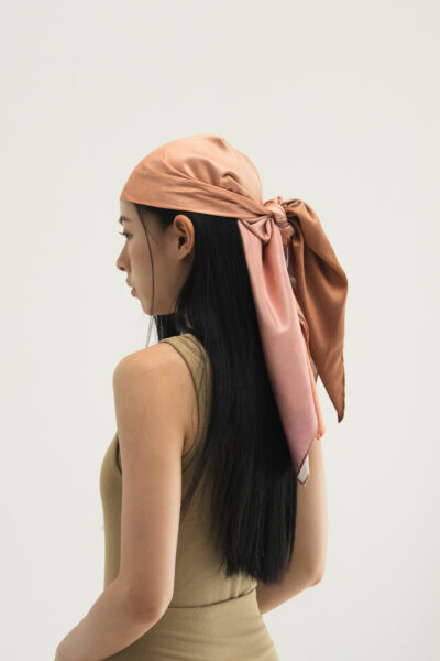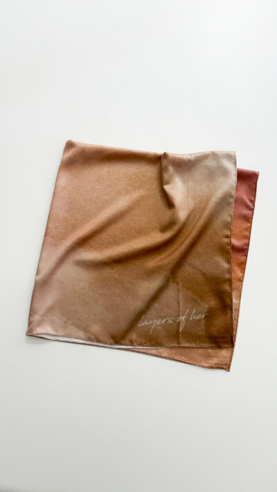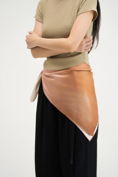 This silky, nude-pink scarf features an abstract design that complements the clean minimalism of the collection. Wear it as a headscarf, tie it around your neck, or wrap it at the waist — a subtle statement piece that transitions effortlessly from casual to chic.