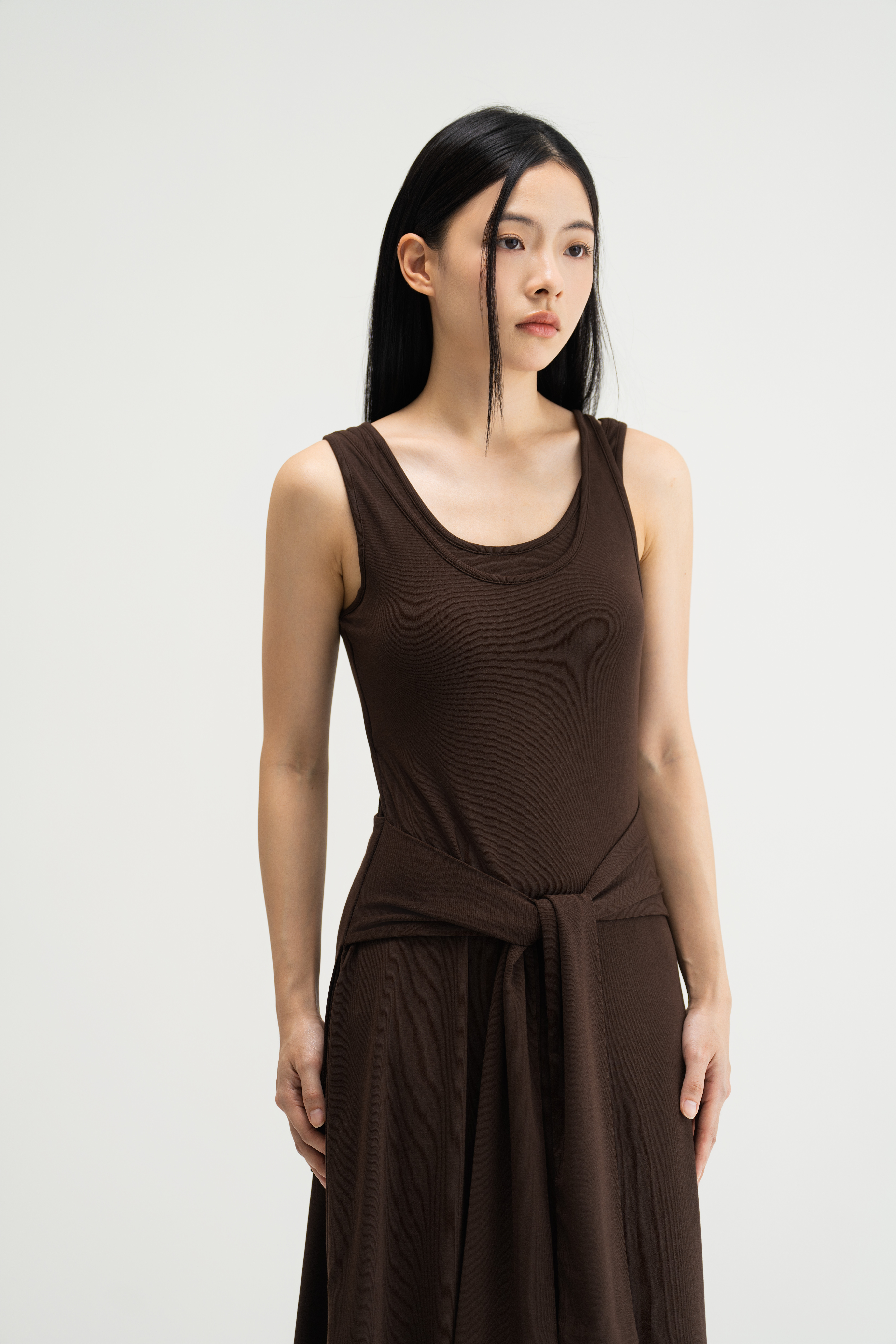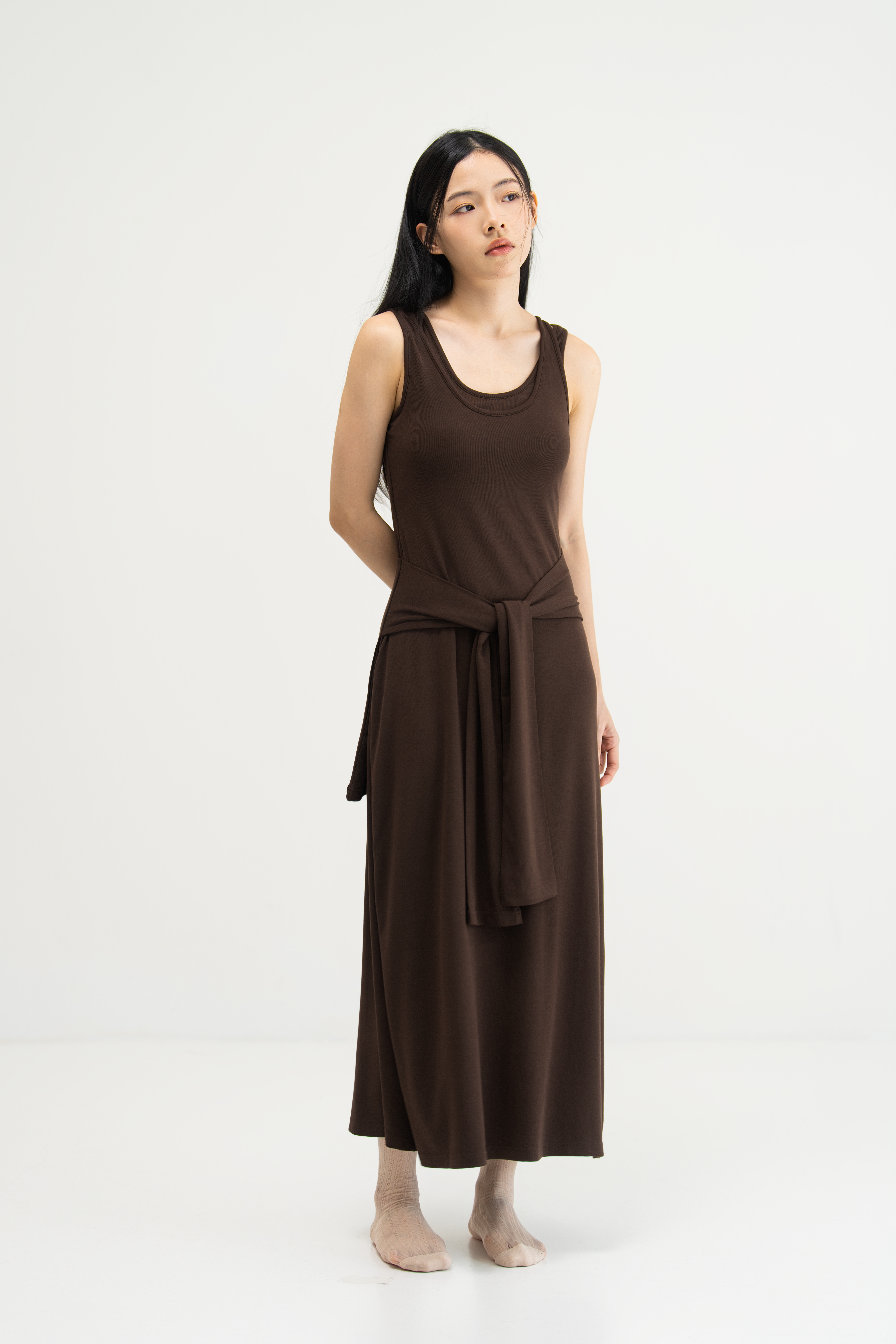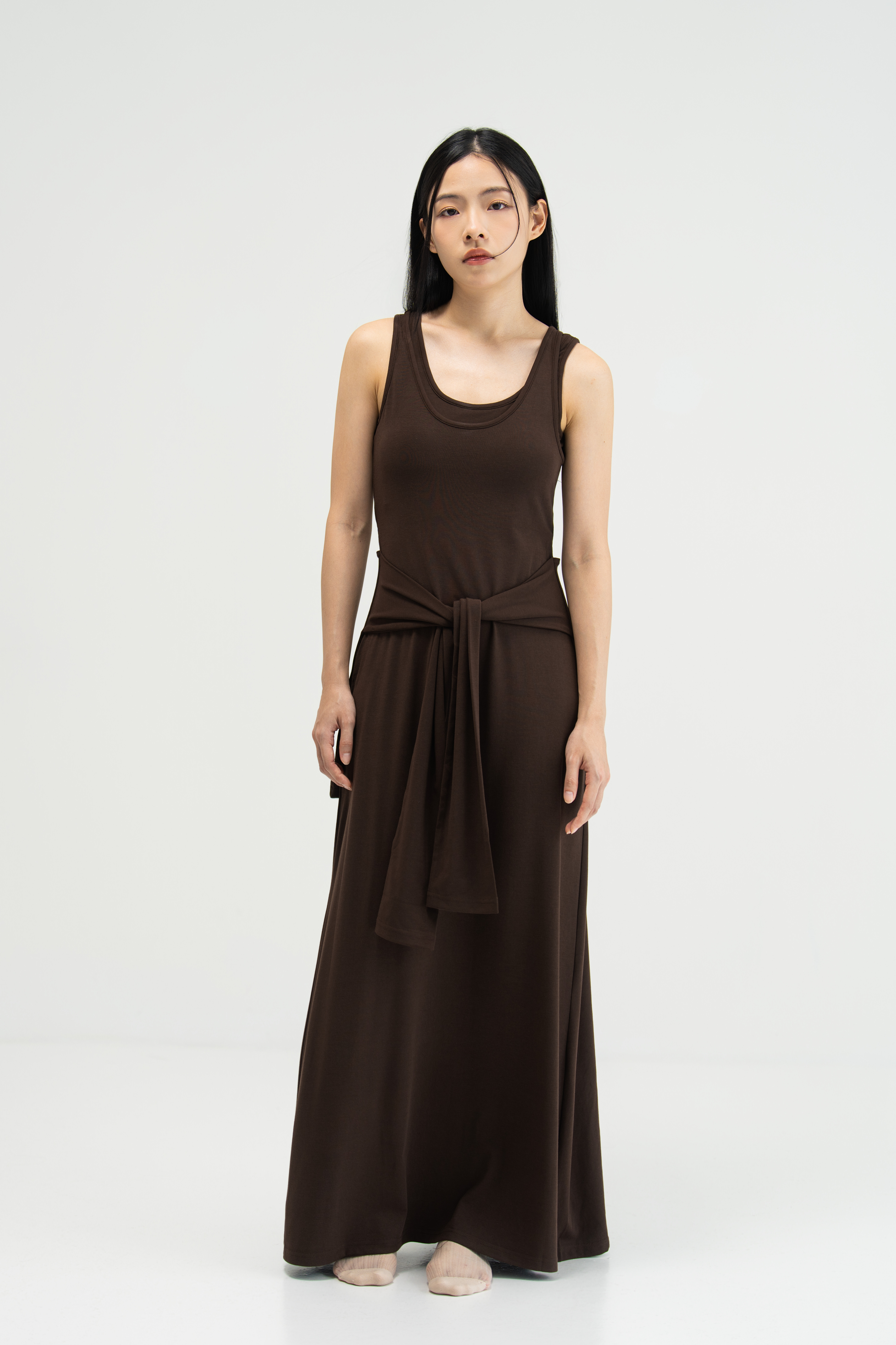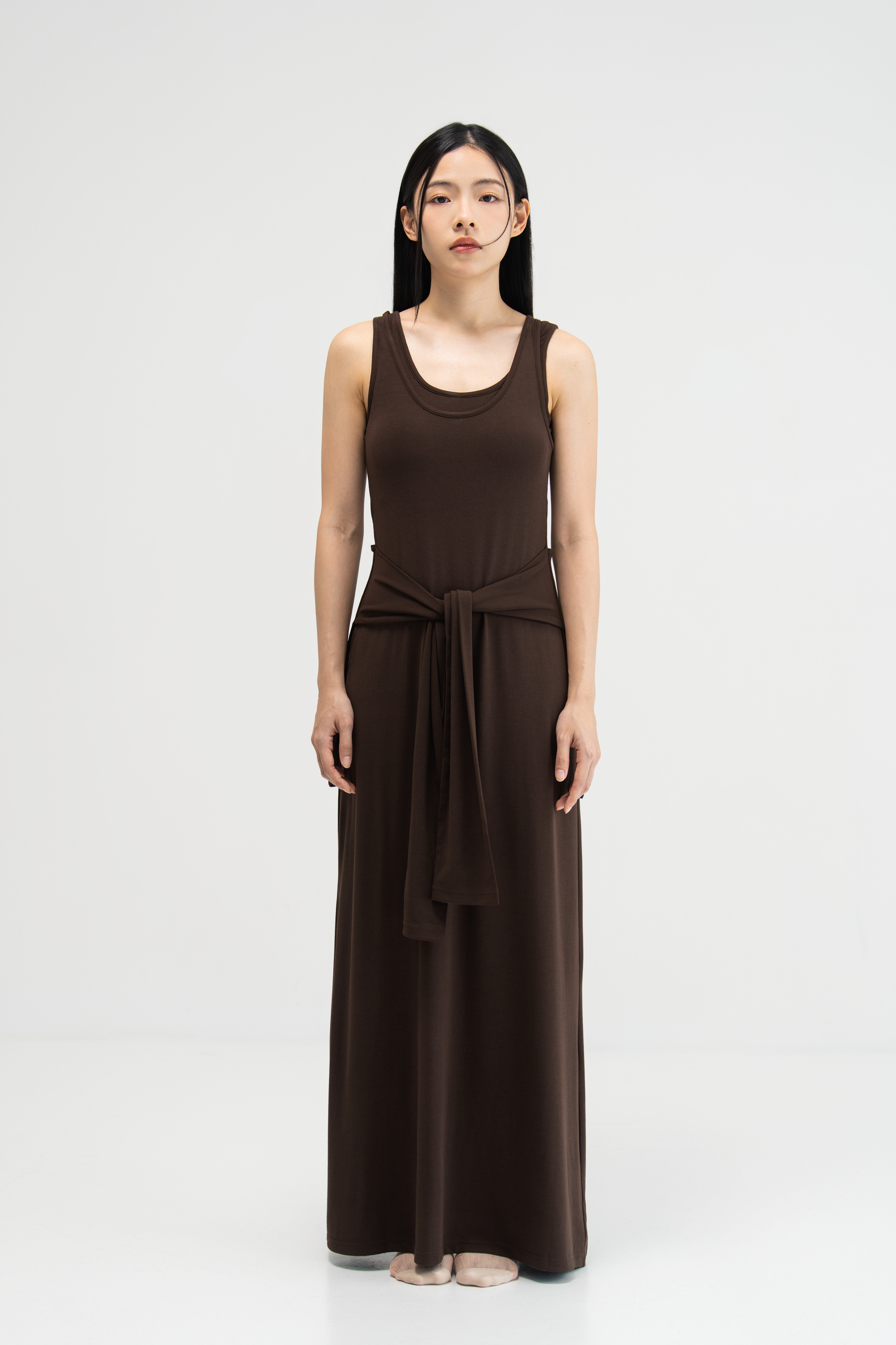 WES x SO | Waist Tie Tank Bra Dress (Brown)